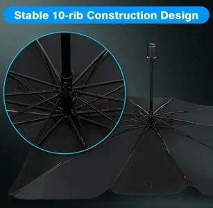 Stay cool and protected with this durable, lightweight windshield sunshade. Made from thick titanium silver fabric with a composite sunscreen coating, it blocks 99% of UVA rays, keeping your car’s interior cool and preventing fading. The 10-bone support ensures stability, while the universal size fits most SUVs, minivans, and pickups. Easy to use like a regular umbrella, it folds compactly for convenient storage in your car door or console.